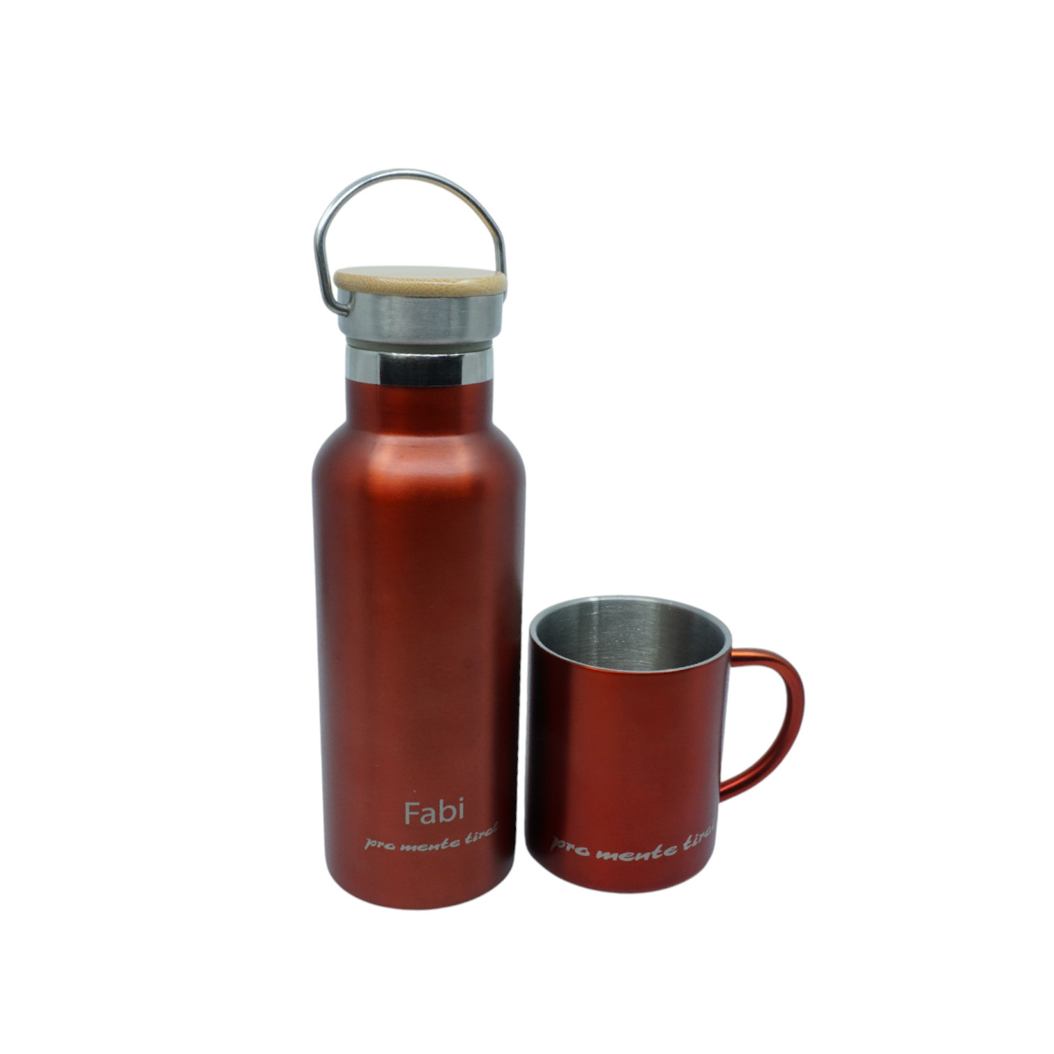 Unsere hochwertige Trinkflasche aus Edelstahl ist nicht nur umweltfreundlich und langlebig, sondern wird auf Wunsch zu einem ganz persönlichen Begleiter. Ideal für unterwegs, im Büro oder beim Sport.